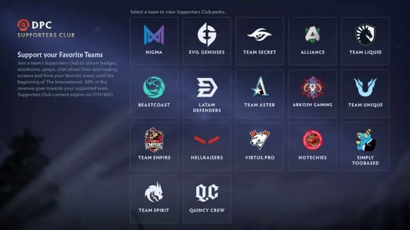 从这些内容中能够发现,此次DOTA2推出的战队应援系统主要面向职业俱乐部粉丝。DOTA2玩家粉丝可以通过这一系列产品在每个Major赛季支持自己喜爱的队伍。更重要的是,战队应援系统的销售收入将有50%直接分配给对应的俱乐部,这意味着V社为DOAT2职业俱乐部们新开辟出了一条挖掘粉丝经济的道路,对粉丝群的号召力将决定俱乐部挣这些“外快”的能力。