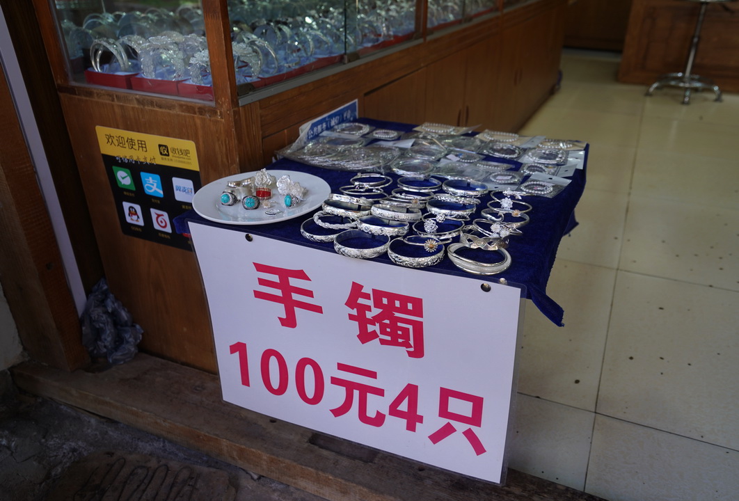 有趣的是这里的店铺几乎有一半是银店,都是卖银首饰和生活器皿的,如果仔细数下,肯定要超过百家。这些银店汇集在一起,成了国内是绝无仅有的景观。
